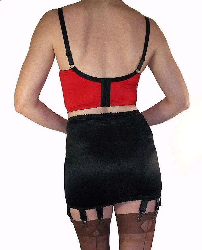 Open bottomed and with a classic retro influence, this satin look girdle with its 10 suspender straps complete with metal clasps is the perfect creation for holding stockings firmly in place.